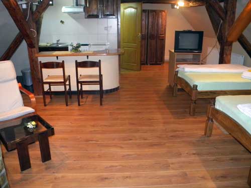 Trokrevetna soba u prizemlju (kablovska TV, internet priključak) Kupatilo (tuš, wc, fen…) Kuhinja (šporet, aspirator, frižider, sudoper)