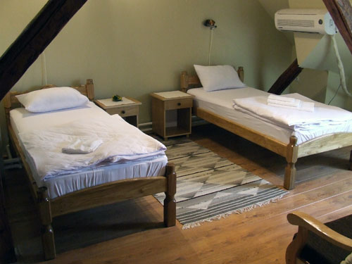 Dvokrevetna soba u potkrovlju (klima, kablovska TV, internet priključak) Kupatilo (tuš, wc, fen…)